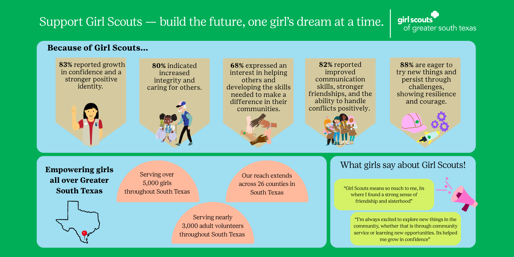 Girl Scouts are innovators, problem-solvers, and the leaders of tomorrow. From building robots and launching community service projects to earning badges that teach courage, confidence, and character, Girl Scouts are constantly learning how to make the world a better place.